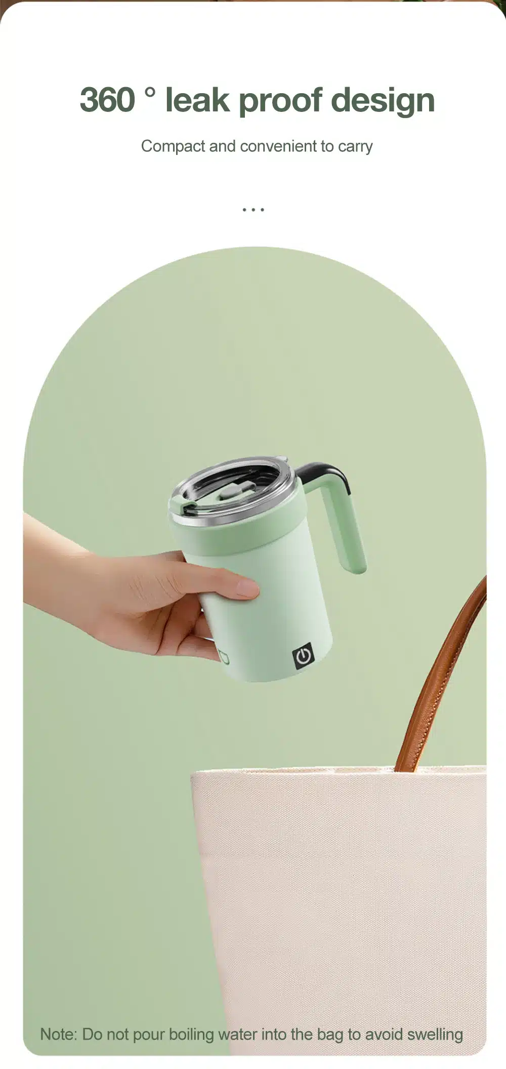This self stirring cup is equipped with Type-C charger, Long lasting battery life, rejecting frequent charging, and can be stirred multiple times after each full charge. Adopting magnetic charging technology. No need to replace the battery, the entire body is waterproof, and the safe structure ensures that water will not penetrate the battery area.