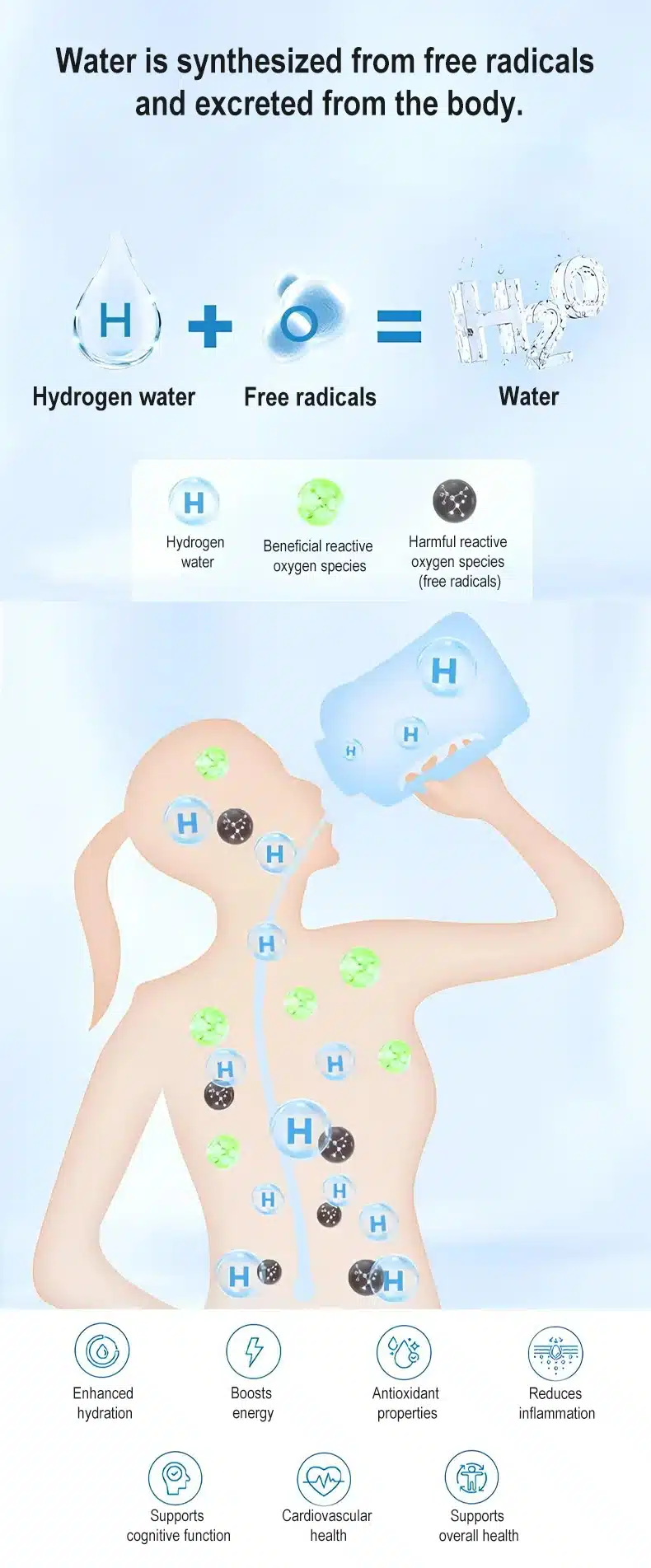 By using high-pressure hydrogen dissolution technology, hydrogen molecules are fully integrated with water under high pressure.